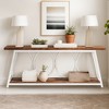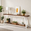Transform your living space with the console table, where rustic wood finishes meet modern metal elements to create an industrial chic look that complements any decor. This 70.9" long table offers ample display area for your favorite items and additional storage below, helping you keep your space organized and clutter-free.
