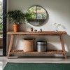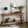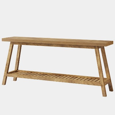 This 70.9" long console table features a 2-tier design, providing extensive storage space while maintaining a narrow, space-saving profile. Its vintage farmhouse style, with classic minimalist lines and a vintage wood grain finish, enhances the elegance of any home space.