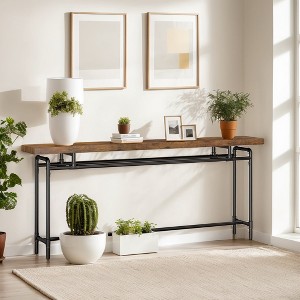 - This minimalist console table features industrial water pipe-style steel legs and a clean-lined design, perfectly blending with any decor style.