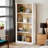 - Featuring a sleek design with a smooth white paint finish and natural oak wood, this bookcase adds a touch of modern elegance to your home décor, enhanced by vertical stripes on the sides.