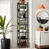 This tall corner shelf is the epitome of space efficiency, standing tall at 78.7 inches while only consuming 13.39 square inches of floor space. Its slim profile and 7 open tiers offer versatile storage for books, decor, and more, adapting seamlessly to any room's needs.