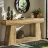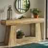 - This wooden console table combines vintage warmth with modern minimalism, infusing your home with cozy, timeless appeal.