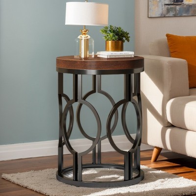 - This half-round side table combines a rustic brown tabletop and sleek black metal legs for a stylish and unique geometric design that suits any decor style and becomes an eye-catching focal point.