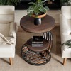 Hommoo Round End Table, 2 Tiers Side Table with Storage Shelf Rustic Brown