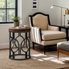 - Embrace the modern industrial trend with this rustic end table that combines mixed materials, round wood veneer top, and a contemporary iron frame, ensuring each piece stands out uniquely.