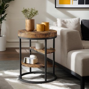 Product Name: Round End Table, Small Side Table with 3-Tier Shelves