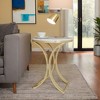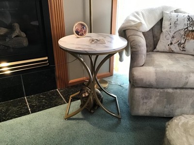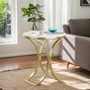 - The chic round end table features a sophisticated faux marble top that adds a touch of luxury to any room, creating an elegant and modern aesthetic without the high cost.