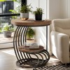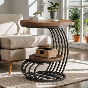 Elevate your home decor with our chic and practical side table, featuring a rustic chocolate brown tabletop paired with a unique arc-shaped metal frame for a touch of sophisticated creativity. Its generous dual-level storage offers ample space for displaying decor and organizing daily items, helping you maintain a tidy living space. Compact and versatile, this small round end table fits perfectly in any room, whether it's your living room, hallway, or bedroom nightstand.