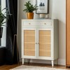 - Accentuated by rattan panels and golden metal handles, this shoe cabinet adds a touch of sophistication to your entryway, living room, or hallway, enhancing the overall aesthetic appeal of your space.