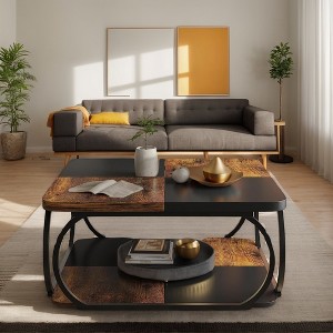 Product Name: Square Coffee Table, 39" Central Cocktail Table with 2-Tier Shelves