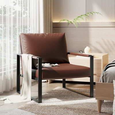 Hommpa Mid-century Accent Chair Ergonomic Linen Armchair with Side Pockets & Steel Frame Gray
