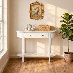 This console table offers a perfect balance of style and function, making it an ideal addition to any entryway, hallway, living room, or dining area. Featuring two drawers for hidden storage and a bottom shelf for baskets, books, or décor, it helps keep your space organized while providing a stylish display surface. Its clean lines and versatile design allow it to complement both classic and modern interiors, making it a functional and decorative piece for everyday use.