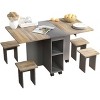 Homy Casa Extendable Folding Dining Table Set with Storage Shelves and 4 Stools, Rustic Gray