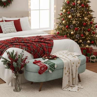Introduce soft sophistication and cozy texture to your home with theHomy Casa Mid-Century Upholstered Accent Bench. Wrapped in plush deep green boucle fabric, this bench adds a modern yet timeless charm to any setting. The gently curved arms and tufted seat create a sculptural silhouette that enhances comfort and visual appeal. Supported by tapered solid wood legs, it offers sturdy functionality whether used in an entryway, at the end of a bed, or as additional seating in the living room. A versatile piece that blends comfort, texture, and elegant design in one statement accent.