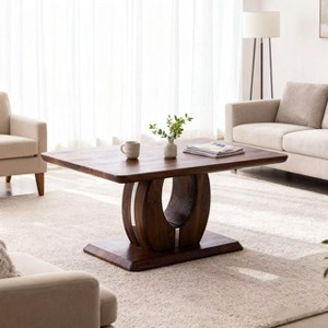 Designed with an eye for modern artistry, this coffee table transforms your living area into a sophisticated retreat. The open circular pedestal base creates a captivating sculptural look, while the warm walnut finish brings depth and comfort to the space. Perfect for both style and function, it serves as a striking anchor for your sofa setup—ideal for relaxing mornings, afternoon reads, or evening gatherings.