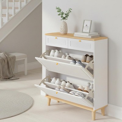 Homy Casa Shoe Storage Cabinet with 3 Flip Drawers and Top Drawer for Entryway or Bedroom, White