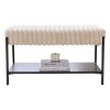 Bring comfort and simplicity to your entryway with this Homy Casa upholstered bench. Featuring a soft cream cushion with ribbed texture and a sleek black metal frame, it combines modern design with everyday practicality. The open lower shelf provides convenient storage for shoes, books, or decor, helping keep your space neat and welcoming. Perfect for entryways, living rooms, or bedrooms, this bench offers a cozy spot to sit while adding understated style to your home.