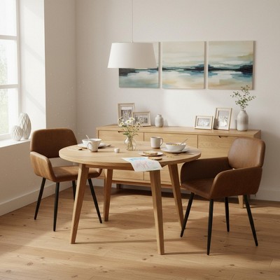 This set of faux leather dining chairs offers a practical seating solution for everyday dining spaces. Designed with upholstered faux leather seats, each chair is easy to clean and well suited for daily meals and family use. The contoured back provides comfortable support, while slim metal legs keep the overall design lightweight and easy to move. With an armless profile that fits neatly under most tables, this set of four chairs works well in kitchens, dining rooms, apartments, or casual dining areas.