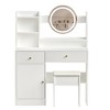 Designed to brighten daily routines, this vanity desk creates a clean and organized setting for makeup, skincare, or study. The round LED mirror features three adjustable color temperatures to support morning prep or evening touch-ups. Open shelves and closed cabinet space keep essentials neatly arranged while the wide desktop offers room for accessories and tools. Ideal for bedrooms, dressing corners, or compact apartments.