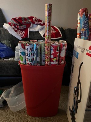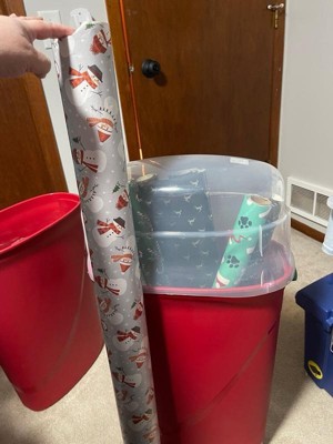[This review was collected as part of a promotion.] I was looking for a solution to store my gift wrap, which is rolling around in totes all over the basement. These clever containers do help corral the rolls, but they don’t have any storage space for other wrapping items like bags, tissue paper, etc. so I still have to use totes for those. Also, they fit most of my rolls but not the longest ones, so under the bed those go. Overall they’re a great solution to keep rolls tidy and dust-free (especially in a basement like mine), and the storage “footprint” is small since they’re upright. It would be even better if the container were divided into two parts: one for rolls and another with pockets for bags and tissue paper, ribbon, etc. As you can see from the photo, you can also store it on its side.