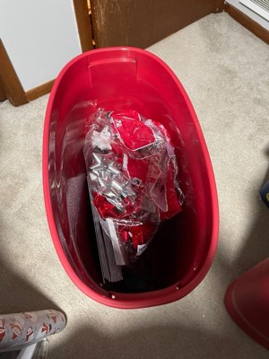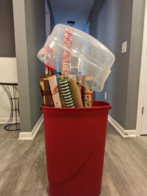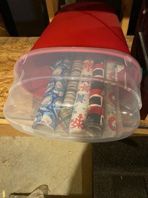 [This review was collected as part of a promotion.] One of the handles arrived broken on the container. I do like that it holds most of my Christmas wrapping items. 2 containers came and for one I put in bows, name tags, tissue paper and new clothing gift boxes. The other one I fit all of my wrapping paper except for one large wrapping paper that was too long to fit. I wish they had extra tall containers that would use fit the long rolls of wrapping paper then it would be perfect! But I am satisfied that my wrapping items will be safely stored and won’t get ripped or crushed or dusty.