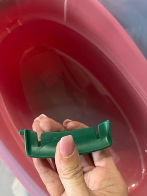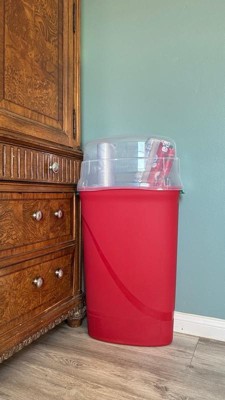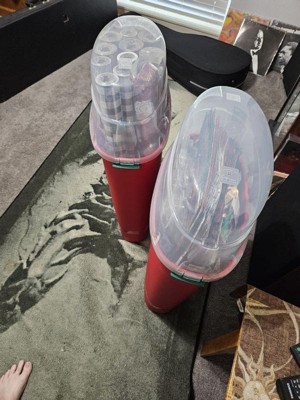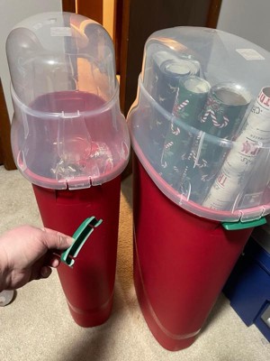 [This review was collected as part of a promotion.] I am only giving this product a 4 out of 5 bc one of the containers arrived with a broken handle. This does not affect the overall function of the product. The handle is broken on one of the plastic containers however, they function only to aid in picking up the container. Otherwise the product has an easy to release tab (refer to picture) on both sides that snaps into place without any problems. The size of the containers are perfect for storing most any kind of wrapping paper. The red and green containers make them more specific to the Holidays which does make it easier to identify, especially if stored with other seasonal decor. I will also be using these to store tissue paper and rolls of fabric.. etc. really a multipurpose product. Who doesn’t have a roll or two of some kind a wrapping paper stuck in a closet or behind a door? Will definitely recommend to family and friends.