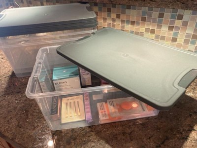 [This review was collected as part of a promotion.] This 4-pack of Plastic Storage Containers from Homz arrived at the perfect time! I have been trying to get more organized around my home and these containers will work perfectly for storing toiletries and beauty products that I don’t use daily, but still want within reach. They are small enough to store on a shelf in my hallway closet and the lids make them easy to stack. The lids are thin but firm and there are clasps attached to the containers that hold the lids securely in place. The quality is excellent and these should last for years. I already feel a sense of relief knowing all my unorganized products will be organized and easy to find. I highly recommend!