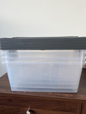 [This review was collected as part of a promotion.] The Homz bin are sturdy and well-made. The clear plastic allows you to see what's inside at a glance, and the molded-in handles make it easy to carry. At 15 quarts, this bin offers a decent amount of storage space. The latches, while secure, can be a bit stiff to open at times. I am thinking they will loosen up a bit with use.