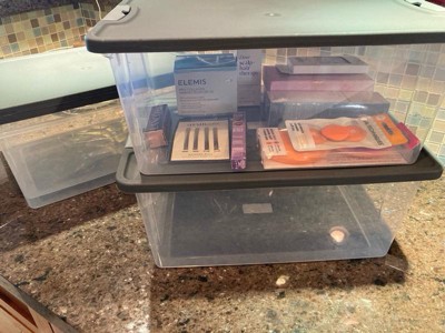 [This review was collected as part of a promotion.] I got these two 64 quart secure latching large clear plastic tote storage bins with they are absolutely amazing they're sturdy they don't fall apart like most of the regular totes that you buy, the brand is Homz and they are 64 quart tote so they're pretty big and very very sturdy you can use them for packing up linens or towels or even storing clothes or toys they're just the perfect tote and they have lids and they're clear so you can see what's in them instead of having to tear through everything or open every tote up. I highly recommend them
