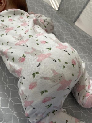 Our sleep & play lives up to its name! This adorable footed sleeper keeps up with baby all day and all night. Friendly features include a zipper front with a tab to protect little chins and fold-over cuffs on the smaller sizes. The full-open zipper makes it easy for those late night diaper changes. 100% soft organic cotton and playful prints make this the perfect one-piece for sleeping, playing, and everything that happens in between. You will want every one of these adorable prints! A registry must-have, this baby pajama makes the best gift for new moms and dads.