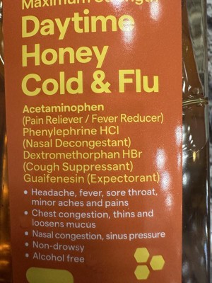 - Daytime honey cold and flu liquid