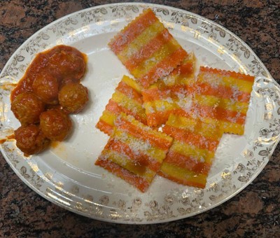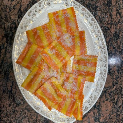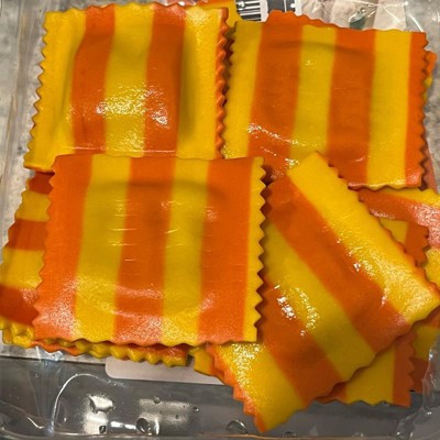 [This review was collected as part of a promotion.] I was excited to try these fall inspired pumpkin raviolis because I love goat cheese and honey. They cooked perfect after boiling for five minutes as instructed in salt water. I tried one before adding any kind of sauce and they tasted mostly pumpkin. I was hoping for more goat cheese and honey flavor so I grated Pecorino Romano on top and added hot honey which tasted very good. I enjoyed pairing them with mini meatballs in marinara. They’re a good value for fresh pasta and enough for two because they’re very filling.