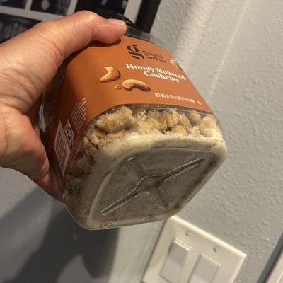- 27oz pack of roasted honey cashews is large enough for sharing