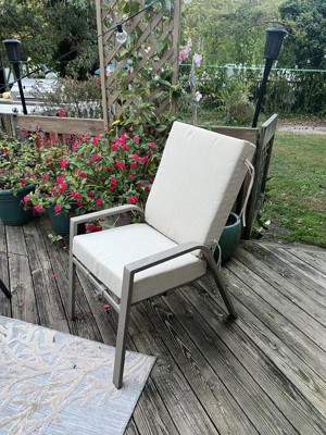 These outdoor highback cushions are a perfect addition to your outdoor furniture. It is not only fashionable but also extremely comfortable. The cushions are fairly thick and return back to their original form when not in use. I love the durable fabric, which is built to last and perfect for all the outdoor elements. The attached ties allow you to secure the cushions easily and the highback cushion offers better back support than other products. I would highly recommend these cushions!