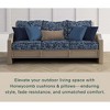 A: Hi MB, thanks for your question! The cushion is not made with Sunbrella fabric—it’s made with our exclusive Solarvie™ fabric, which offers similar high-performance features. Solarvie™ is engineered to be weather-resistant, repelling water during light rain and drying quickly. It also provides ultra durability, resisting stains, mold, and mildew, with UV protection up to 2,000 hours to maintain its color over time. Additionally, Solarvie™ offers a luxurious feel, with a soft, lounge-worthy texture. Maintenance is simple—just clean with soap and water to keep it looking fresh.