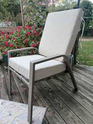 These outdoor highback cushions are a perfect addition to your outdoor furniture. It is not only fashionable but also extremely comfortable. The cushions are fairly thick and return back to their original form when not in use. I love the durable fabric, which is built to last and perfect for all the outdoor elements. The attached ties allow you to secure the cushions easily and the highback cushion offers better back support than other products. I would highly recommend these cushions!
