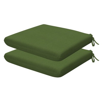 Revive your outdoor furniture in quality and style with our 2-pack premium patio dining seat cushions. Crafted with durable and beautiful fabrics, these cushions will resist the elements while remaining bright and beautiful for years to come. Finished & filled in the US with superior recycled polyester fiber for long-lasting comfort and support. Measures 20"W x 20"D x 4" thick.