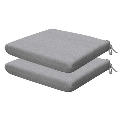 Revive your outdoor furniture in quality and style with our 2-pack premium patio dining seat cushions. Crafted with durable and beautiful fabrics, these cushions will resist the elements while remaining bright and beautiful for years to come. Finished & filled in the US with superior recycled polyester fiber for long-lasting comfort and support. Measures 20"W x 20"D x 4" thick.