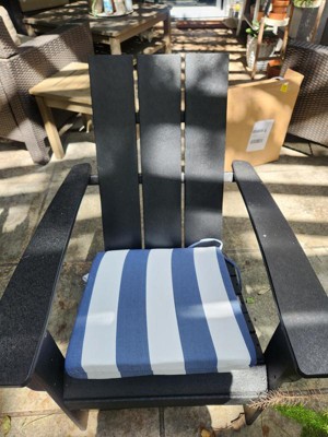 Nice cushion for outdoor furniture. The nautical striped design feels timeless. The outdoor cushion fabric wipes clean, holds solidly to furniture with two attached ties and offers a soft spot for chairs.