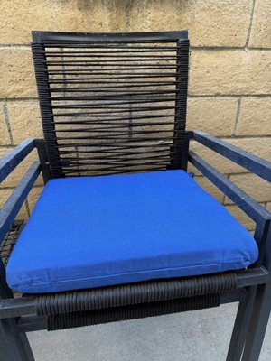 These outdoor cushions are a hit in our home! They came in a set of two which accented our other cushions. They are not super thick and the foam is not super rigid so if you are looking for a thick, sturdy cushion these are not that. They are a great everyday option for our chairs. They tie nicely and held up nicely in weather. The color held strong during late summer sun season. The bright blue is a fun option. Really liking these!