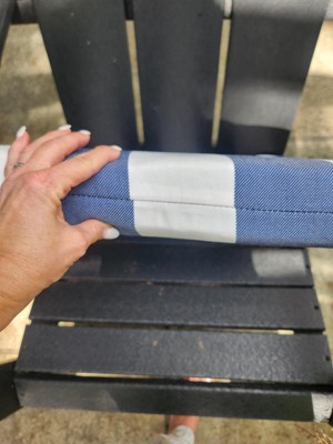 Nice cushion for outdoor furniture. The nautical striped design feels timeless. The outdoor cushion fabric wipes clean, holds solidly to furniture with two attached ties and offers a soft spot for chairs.