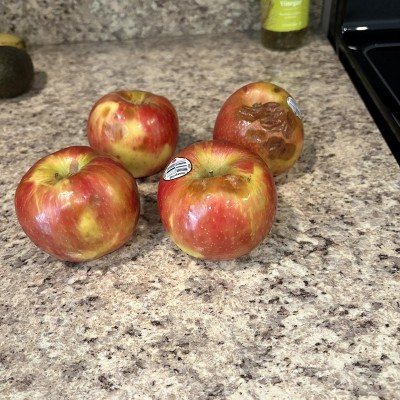 Apples weren’t in a produce bag, all bruised and cut open. Highly disappointed