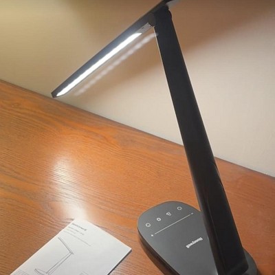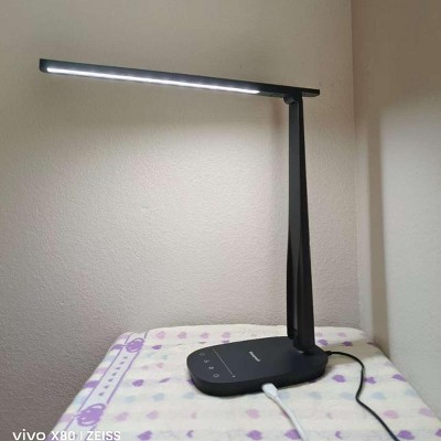 Great desk lamp for daily work/study. Wide dimming range with 4 color modes (warm to cool). Foldable arm is easy to position, and the base is compact but stable. USB-A/C charging is super convenient. Small con: the touch panel is a bit sensitive and the beam feels focused at max brightness. Overall, practical and good value.