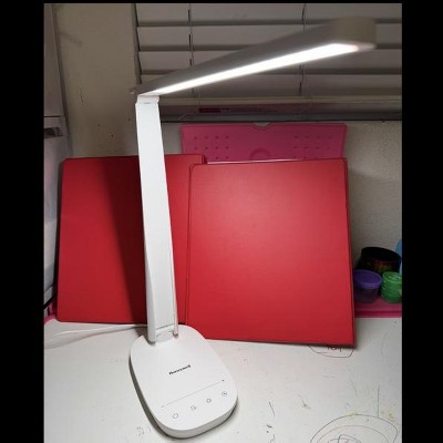 This desk lamp puts a great amount of light. It folds 90 drgrees and has touch buttons on the base of it. Overall it is a great product that serves its purpose.