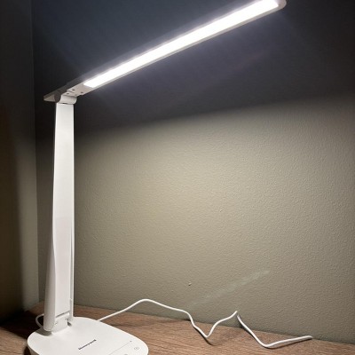 Great desk lamp for daily work/study. Wide dimming range with 4 color modes (warm to cool). Foldable arm is easy to position, and the base is compact but stable. USB-A/C charging is super convenient. Small con: the touch panel is a bit sensitive and the beam feels focused at max brightness. Overall, practical and good value.