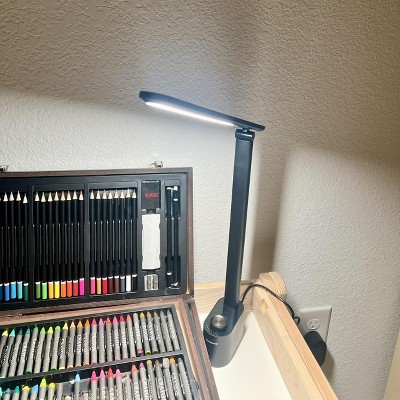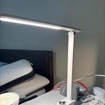 This LED desk lamp is a game-changer! The sleek design looks great on my desk, and the adjustable brightness and color temperature are a lifesaver. I can easily switch from bright white light for work to a warm glow for reading. The flexible gooseneck holds its position perfectly, directing light right where I need it. It's sturdy, functional, and well worth the price. Highly recommend!
