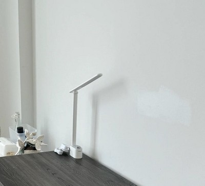 This desk lamp features a sleek and minimalist design with an adjustable arm, providing soft and comfortable lighting that’s perfect for long study or work sessions. The knob control at the base feels smooth and intuitive. It’s not only practical on a desk but also adds a touch of elegance, creating a cozy atmosphere when lit at night.