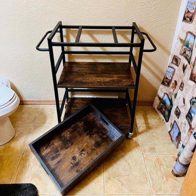 [This review was collected as part of a promotion.] I purchased this new wood and metal rolling storage cart because I needed additional storage in my bathroom. I couldn’t be happier with this storage cart! The cart itself came with assembly required, but the instructions were pretty straightforward and it was easy to put together just using the pictures and only took about 20 minutes. The cart is very sturdy and high quality,but also beautiful with the darker wood and the metal frame. The wheels are so smooth it’s almost effortless to push. But the best feature of this cart is the removable tray on top. If someone wanted to use this as a kitchen cart, you could easily wheel this down to a bedroom and use the removable tray to serve breakfast in bed. There are so many possibilities with this cart!