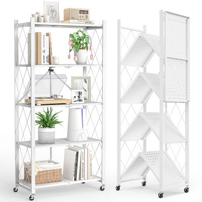 HONGGE Storage Shelves, Foldable Metal Shelving Units for Garage Kitchen Bakers, Collapsible Organizer Rack, Heavy Duty on Wheels
