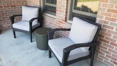 This was not an inexpensive set of patio chairs, but I splurged because I wanted a gray set and they are hard to find. I also liked the design, which is a little more stylish than the usual. Unfortunately, the screws did not line up and my husband and I spent two hours trying to attach the arms to the body. So, I gave up and spent the next hour contacting Target to let them know that I needed a return and pick up at my house. The first person put me on hold for 20 minutes while he went to get a tracking number. I guess he needed a snack too because he never came back. I called again and finally talked with someone who initiated the return, THEN I had the impossible task of getting the two chairs pieces back in the box and taped. The entire saga took my entire afternoon. I'm left with no chairs, a backache, a headache.